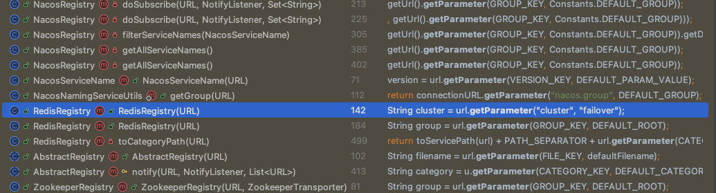 这个URL类,作为Dubbo infra层的核心类,就像Java标准库中的String类一样,遍布整个Dubbo代码仓库,主要的使用场景就是跨各个模块、层次的API界面,传递【配置和元数据】。