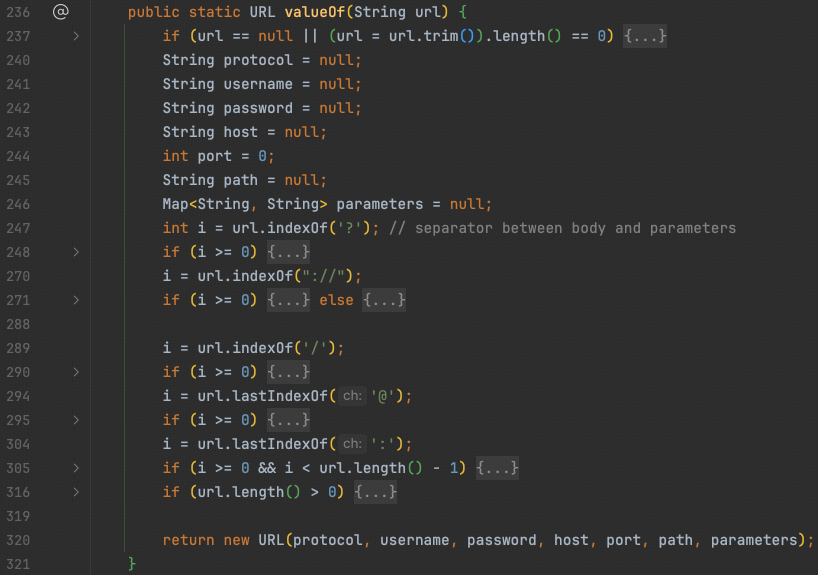 因此我们可以看到,URL类中除了一个宽松的Map,还有大量语义化的字段,和URL的基础概念匹配。
